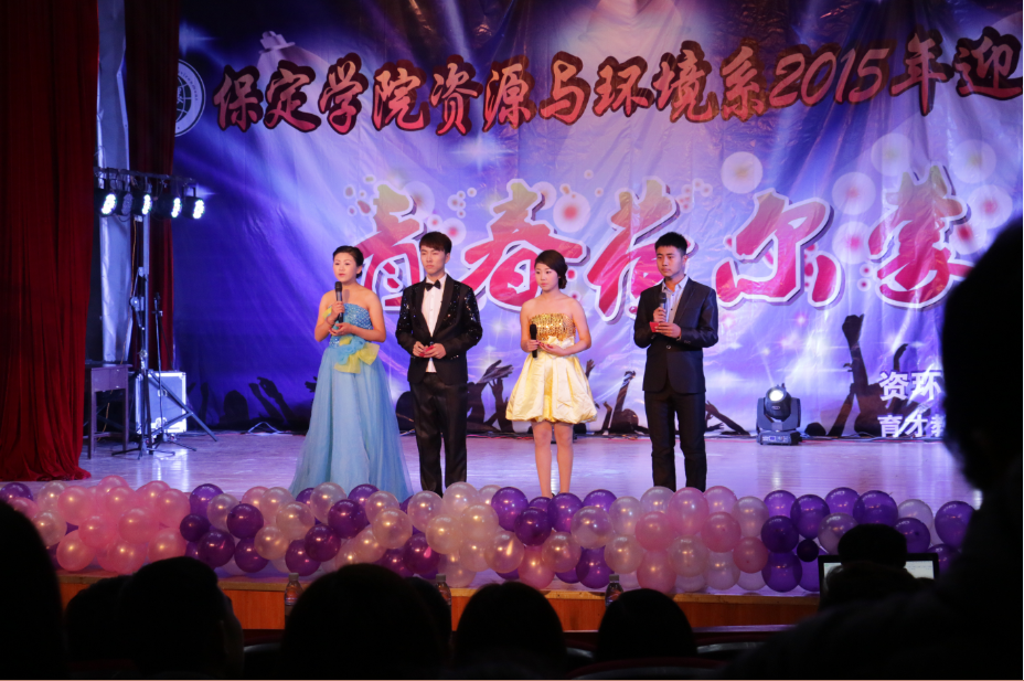 经过几个星期的精心准备,由学生会承办,海天晨光赞助的《保定学院资源与环境系2015年迎新晚会》于11月11日在院多功能厅举办。这场晚会营造了火热律动的气氛,提供了一个逐梦青春的舞台,让与会师生共同度过了一个欢乐美妙的夜晚。