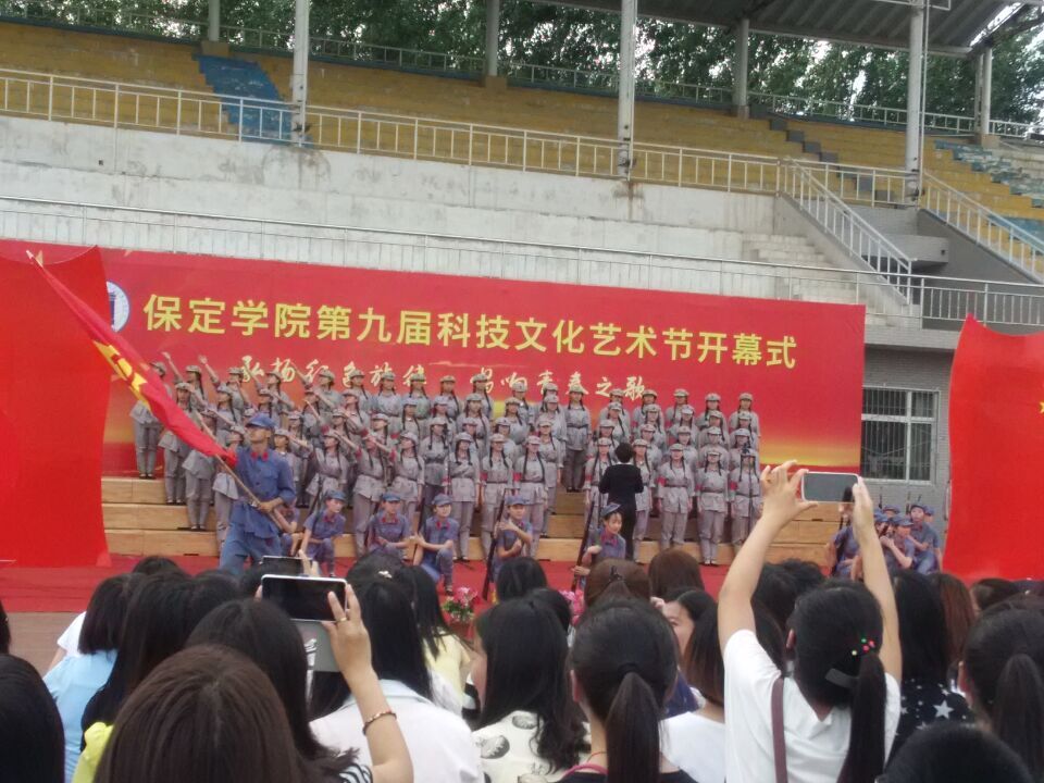 保定学院第九届科技文化艺术节开幕式于2015年5月13日下午开始,资源与环境系参加了 "弘扬红色旋律 唱响青春之歌"纪念抗日战争胜利70周年的主题歌会,并承办了"指点星河 探秘宇宙"的知识竞赛。
