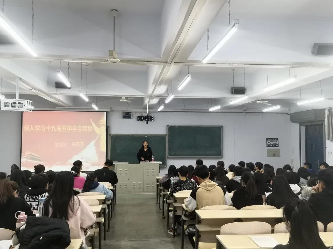 为深入学习贯彻十九届五中全会精神,朱燕芝书记于2020年11月7日晚在B-110教室为地理与旅游学院入党积极分子进行了党课教育。
