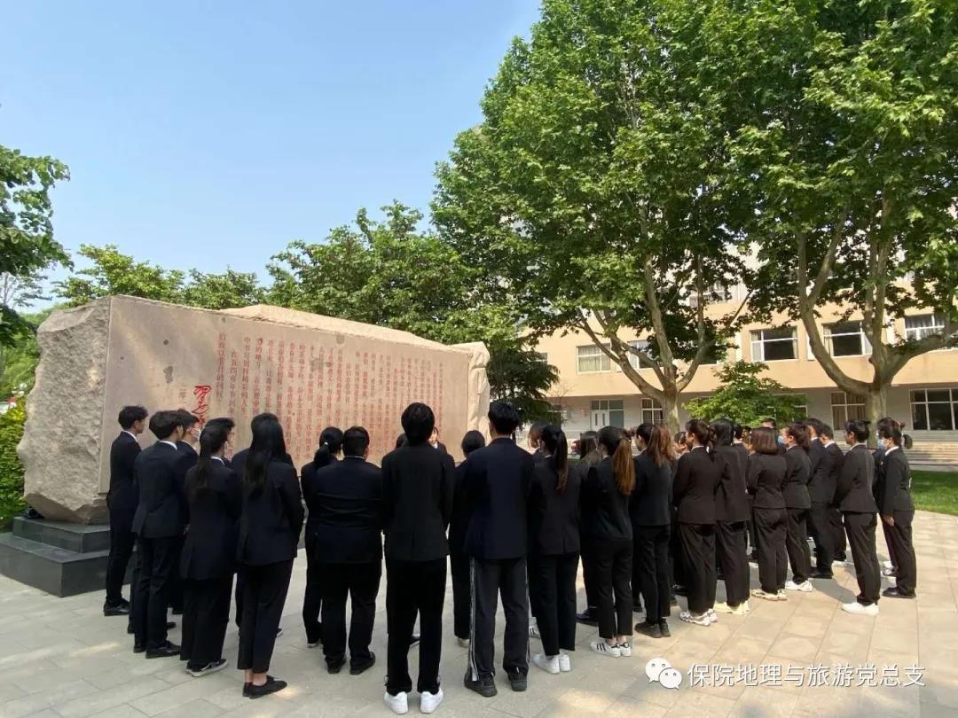党日活动参观的第一站是回信石。信中高度赞扬了西部支教同学的精神,勉励青年人到基层和人民中去建功立业,在实现中国梦的伟大实践中书写别样精彩的人生。全体党员在保定学院的回信石下, 都激情澎湃,热情高涨。许多党员表示要把总书记的教诲作为自身成长的行动指南,好儿女志在四方,也要以保定学院西部支教毕业生群体为榜样,让青春之花绽放在祖国最需要的地方。