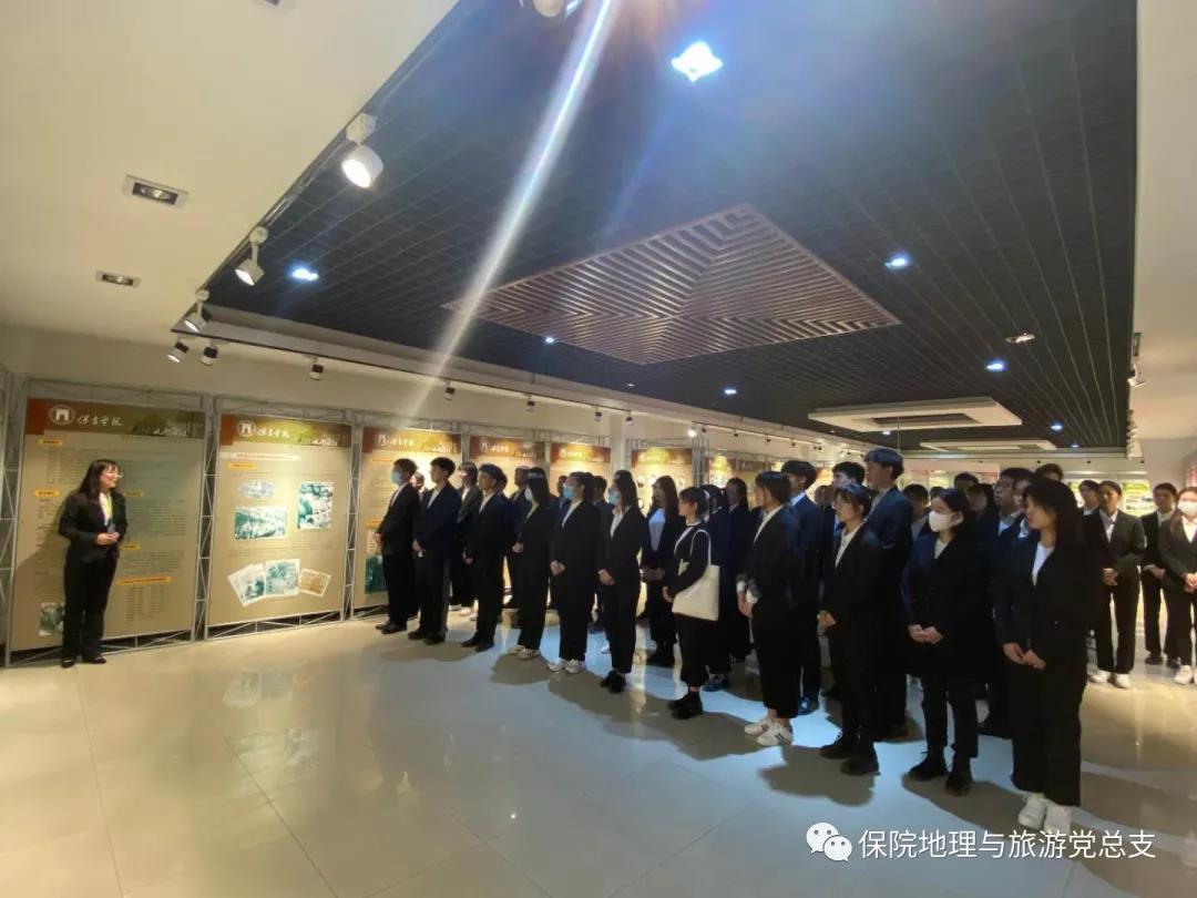 来到西部支教馆后,讲解员向党员们讲述了我校西部支教的发展。2000年,保定学院首批15名毕业生,奔赴新疆维吾尔自治区巴音郭楞蒙古自治州且末中学任教,谱写了属于他们的华彩青春乐章。自此以来,20多年里,保定学院的毕业生们,源源不断地为中国西部教育事业贡献力量。20多年间,我校已经有近170位毕业生赴偏远地区支教。在“德业兼修,知行并重”这一校训的激励下,一代代保院人正在不断砥砺前行,参观完毕,进一步加深了党员同学们的入党初心,并将入党初心与参观校史馆内心的感悟融合。