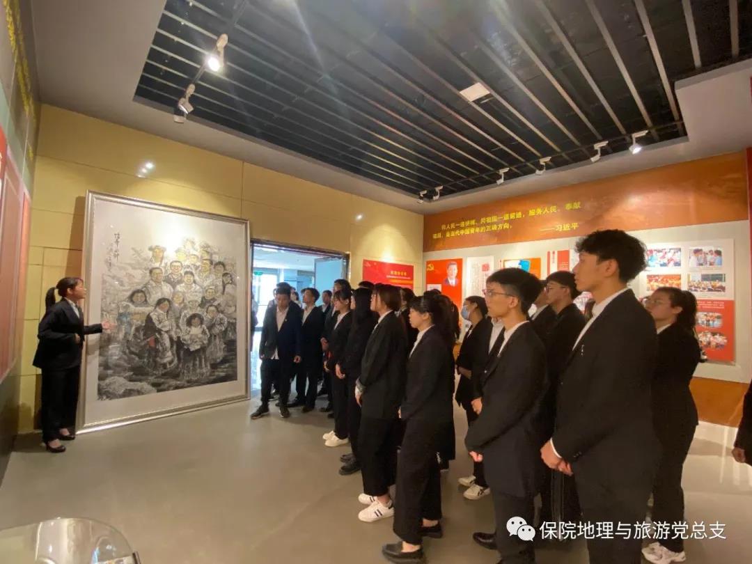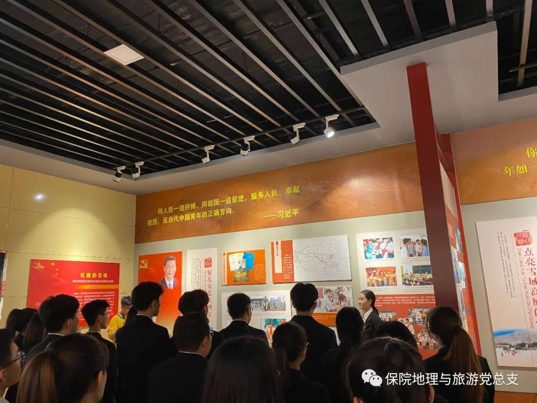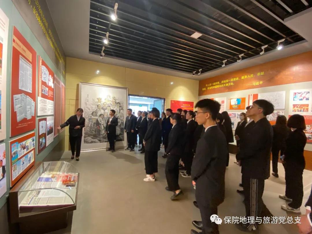 地理与旅游学院于2021年5月13日,响应校党委的号召,开展了"重温入党誓词、传承红色基因、勇担创新使命”主题党日活动。组织党员参观了"校史馆”、“西部支教馆”、“总书记回信石”、“校训石”、“红色长廊”和“三杆”书廊等,感受红色文化。