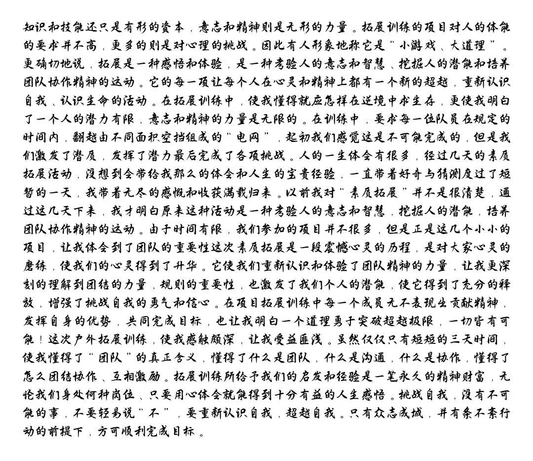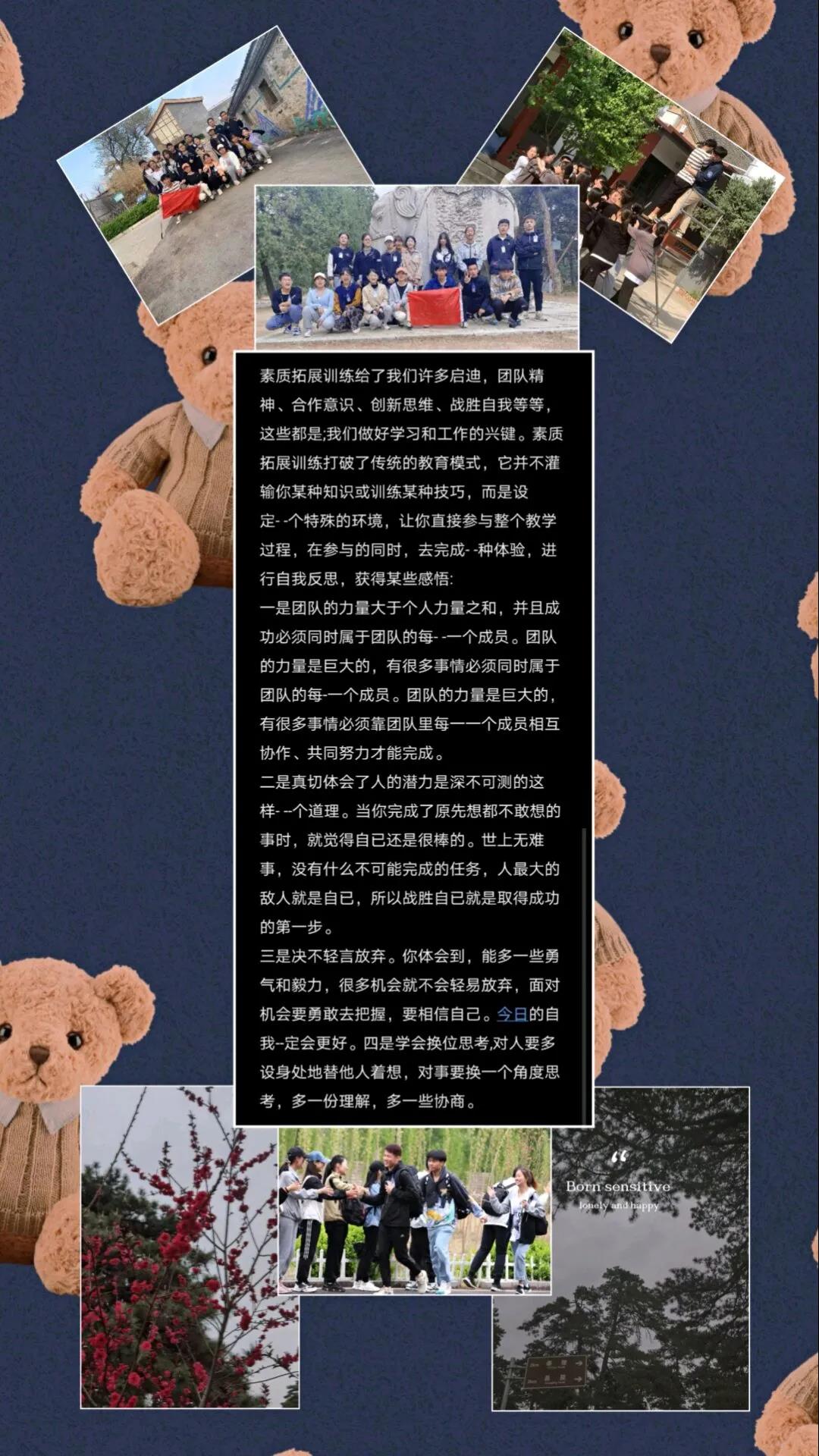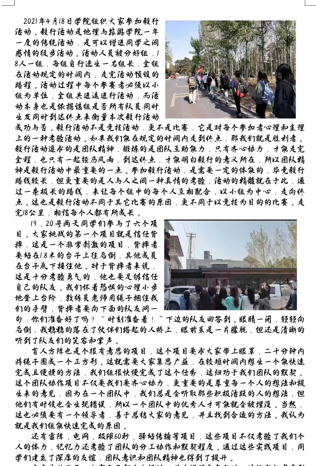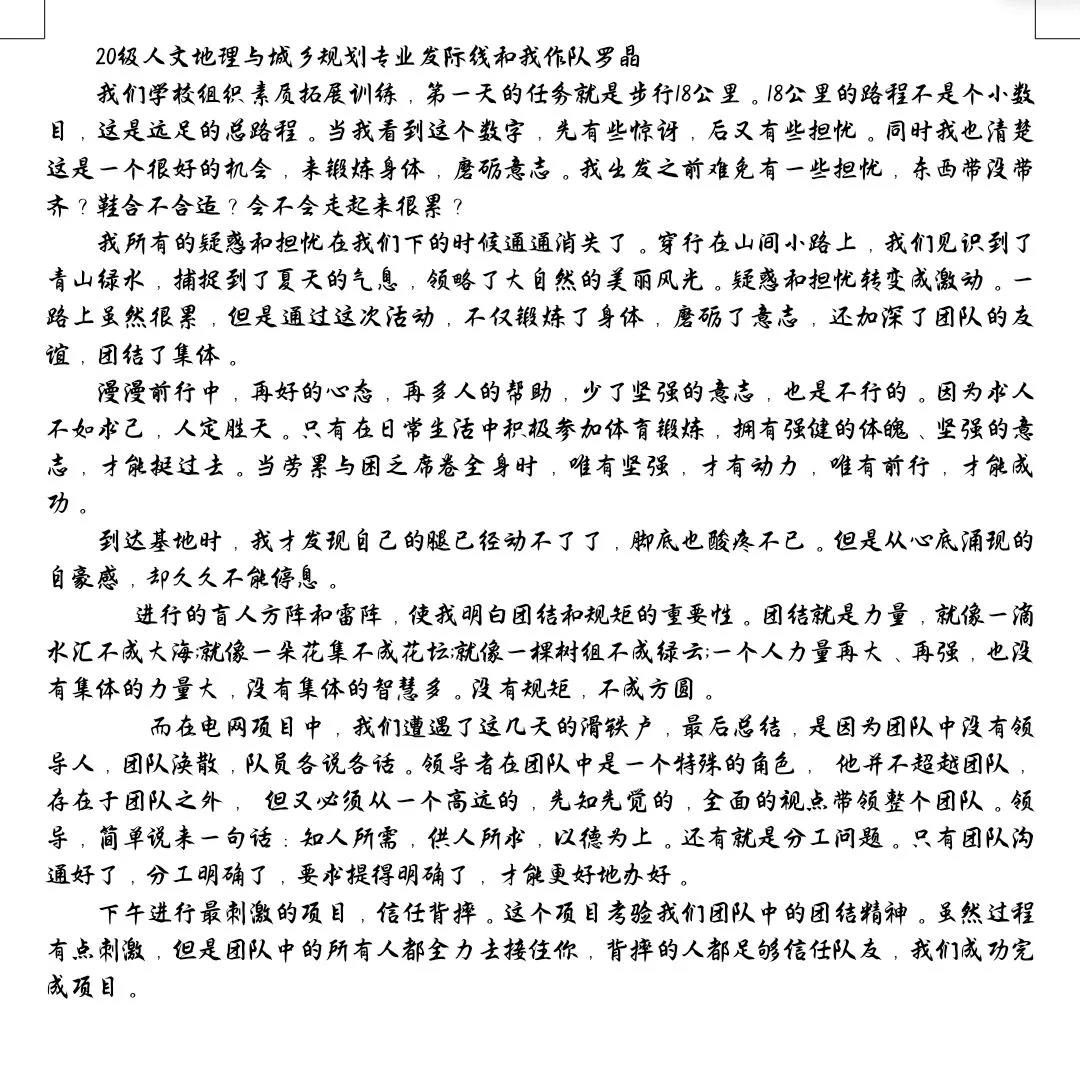 在结束了为期一周的拓展训练活动后,同学们克服了心理惰性,磨练了战胜困难的毅力,培养了积极面对各种困难的乐观态度,充分认识到了团队的作用,增进了彼此之间的了解。为了丰富同学们的校园生活,增强同学们对拓展训练的认识。我们特此举办“少年在路上”拓展训练作品征集活动。