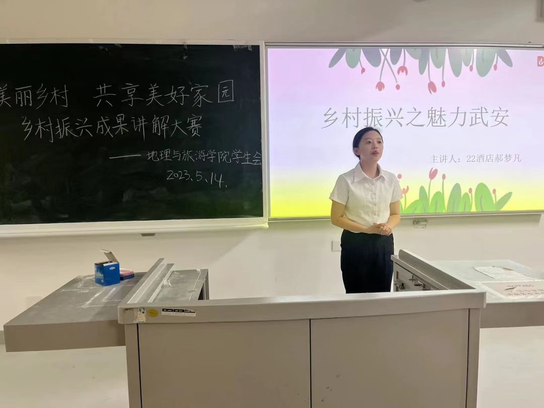 乡村振兴是实现全体人民共同富裕的必然选择,是建设现代化经济体系的重要基础,是建设美丽中国的关键举措,为实现共同富裕的远景目标,推动乡村振兴战略深入人心,地理与旅游学院团总支于2023年5月14日在E-3-203举办“建设美丽乡村,共享美好生活”乡村振兴成果讲解大赛。
