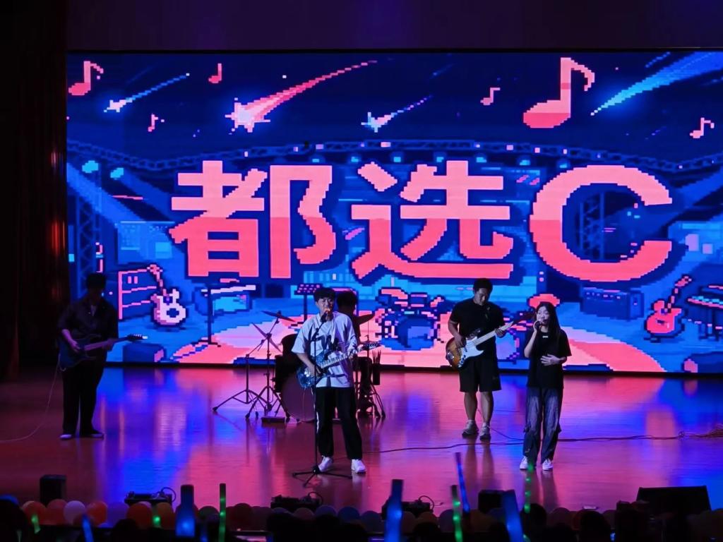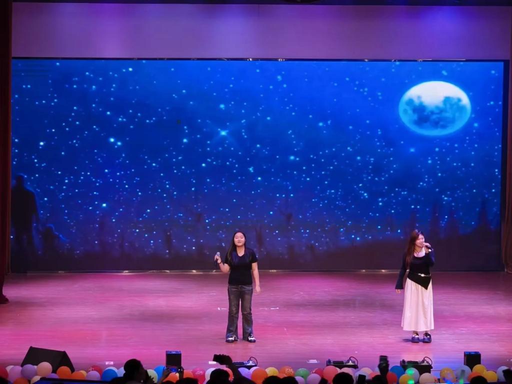 除了这些精彩的表演,还有礼模队的走秀和影子舞台剧也成为了晚会上的一大亮点,将晚会的氛围推向了高潮。台下的观众们早已被这热烈的氛围所感染,欢呼声、掌声此起彼伏,如同一波又一波的浪潮,不断冲击着现场的每一个角落。整个会场都沉浸在欢乐与活力之中,每个人的脸上都洋溢着青春的笑容。