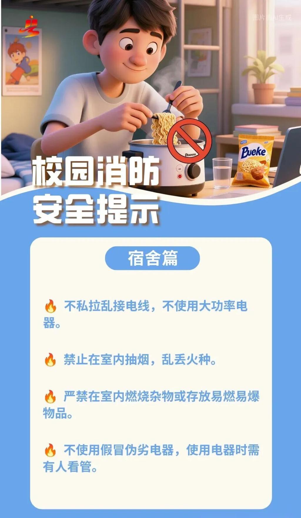 火势汹汹,消防知识不能忘;水火无情,安全重千钧。消防不是一阵风,而是一场持久战,绝非“119”一天就能万事大吉。只有把每一间宿舍、每一次充电、每一根电线都当作“战场”,把“人走断电”“严禁大功率”做成肌肉记忆,才能真正把火灾挡在门外。平安校园,不靠运气,靠你我日日不松的警惕;珍爱生命,远离火灾,让“全民消防”从口号变成365天的行动!