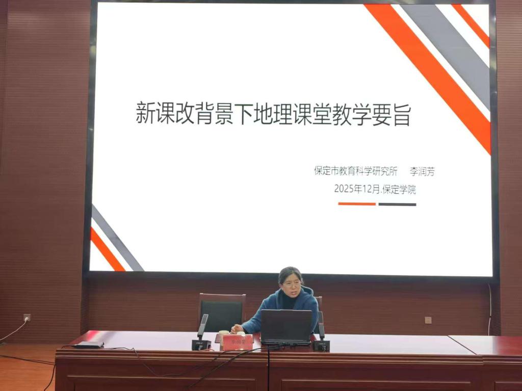 为筑牢地理科学专业学生的教学理论根基,提升教育教学实践能力,明确师范生职业成长方向,12月2日,地理与旅游学院特邀保定市教育科学研究所李润芳老师,在昌绪学术厅为地理科学专业全体学生开展了“新课改背景下地理课堂教学要旨”专题讲座。