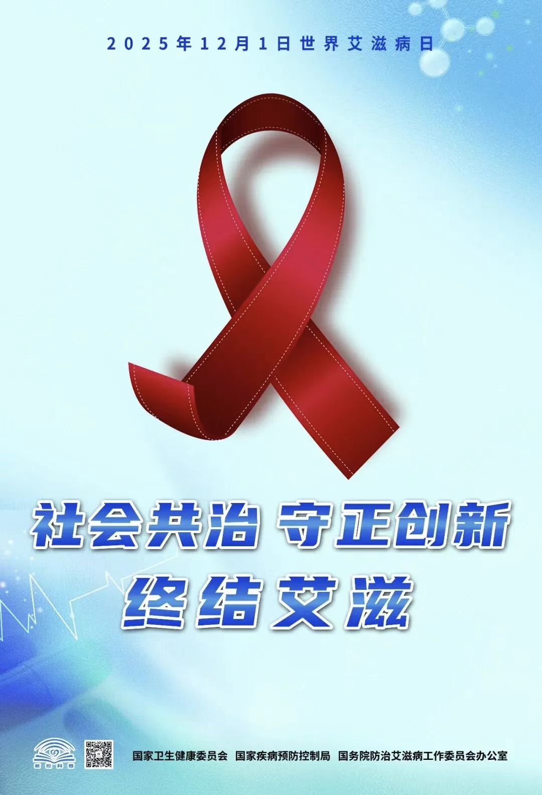 2025年12月1日是第38个“世界艾滋病日”。我国今年的宣传活动主题为“社会共治,守正创新,终结艾滋”。在这个共同关注健康的日子里,我们呼吁每位同学:用科学武装自己,用关爱温暖他人,携手筑牢校园健康的防护墙。