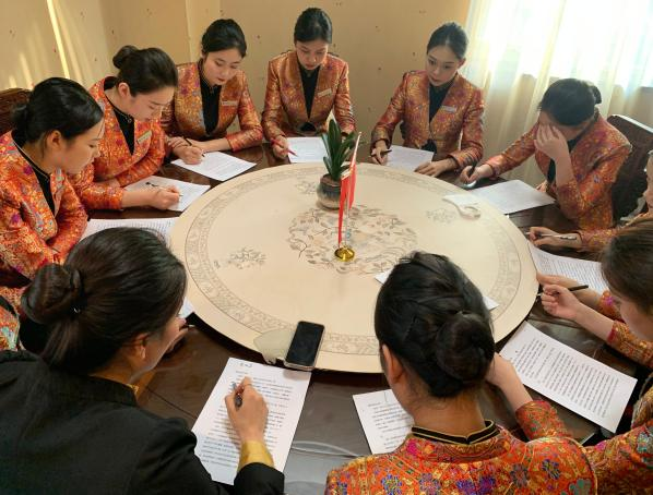 航空服务艺术与管理专业历经五年建设和发展,具有完备的课程体系,且配备了一支教学能力强、学科门类齐全的师资队伍。担任此专业教学任务的教师中,拥有航空服务艺术与管理相关专业背景的教师46名,其中双师型教师30人、双师型教师占比62.5%,师资队伍年龄和学缘结构合理,在航空服务艺术与管理专业的理论与实践教学中发挥着重要作用。特别是思想政治教育、旅游管理、艺术学、美术学等专业课程的多名教师,潜心钻研与航空服务艺术与管理课程的融合,丰富完善了原有的课程内容,拓宽了知识结构,并积极将教学内容、科研成果编入教材,为办好航空服务艺术与管理专业提供了有力的师资支撑。